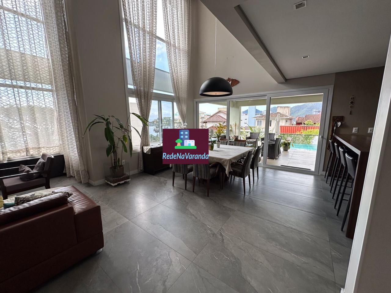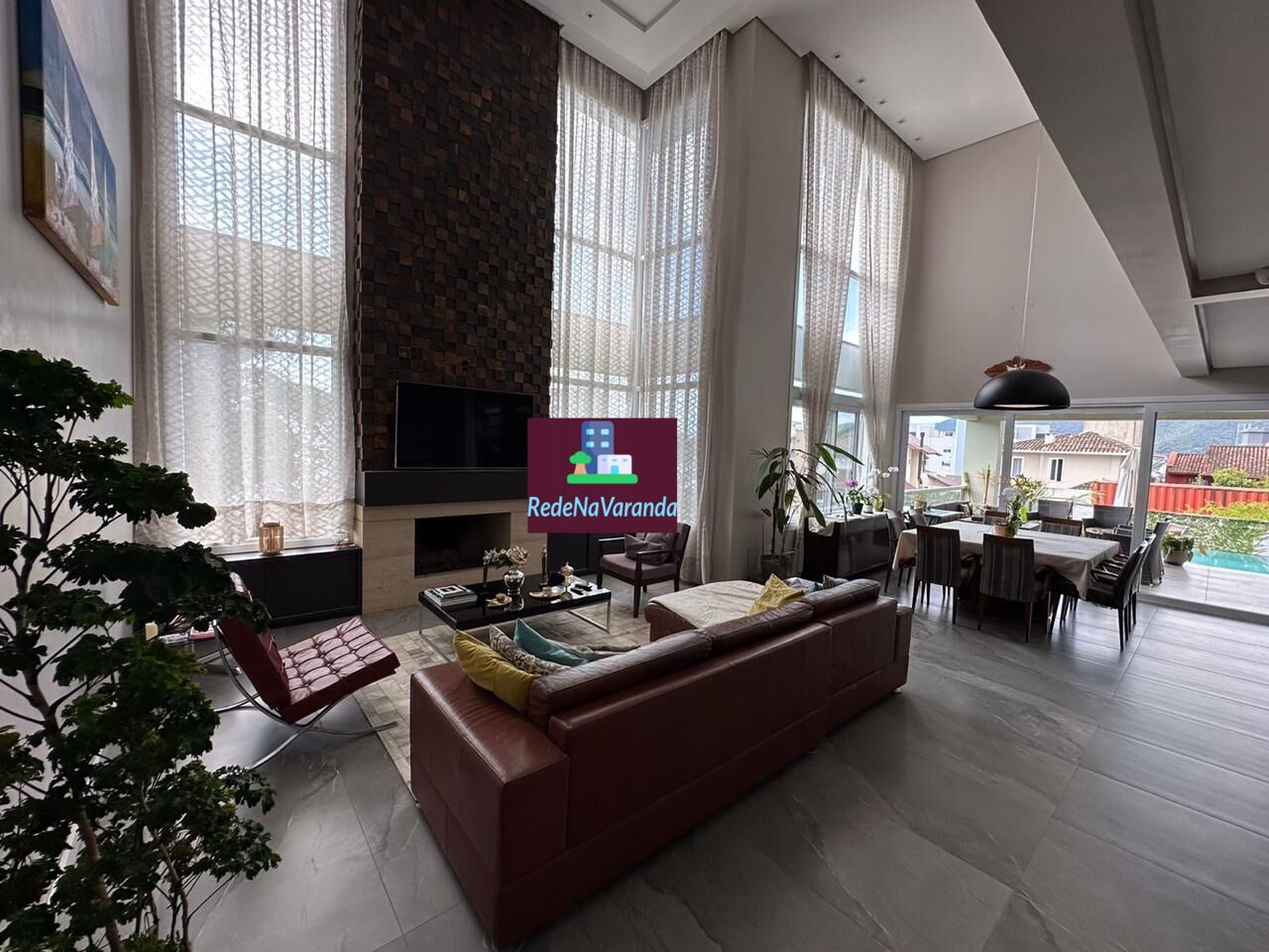 Escada com madeira de Lei, Sala e Living com pé direito de 6 metros, Escritório, Lavabo, Porta Entrada Pivotante 1,6 metros de largura, Cozinha completa com Geladeira Side By Side, Torre de Fornos e Cristaleira, Lavanderia sob medida e Dispensa.